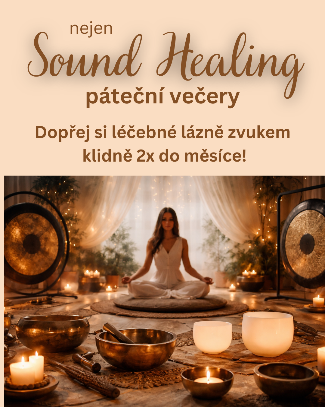 Zvuková lázeň je forma hluboké relaxační a meditační praxe, při které vibrace nástrojů (např. tibetských mís, gongu či zvonků) působí na nervový systém a pomáhají tělu přejít do stavu hlubokého uvolnění. Harmonické frekvence podporují aktivaci parasympatického nervového systému, čímž přispívají ke snížení stresu, uvolnění svalového napětí a celkové regeneraci organismu. Zároveň mohou pomoci zklidnit mentální aktivitu a podpořit lepší koncentraci i kvalitu spánku. Dopřejte si večer, během kterého můžete vědomě zpomalit, obnovit vnitřní rovnováhu a načerpat novou energii.